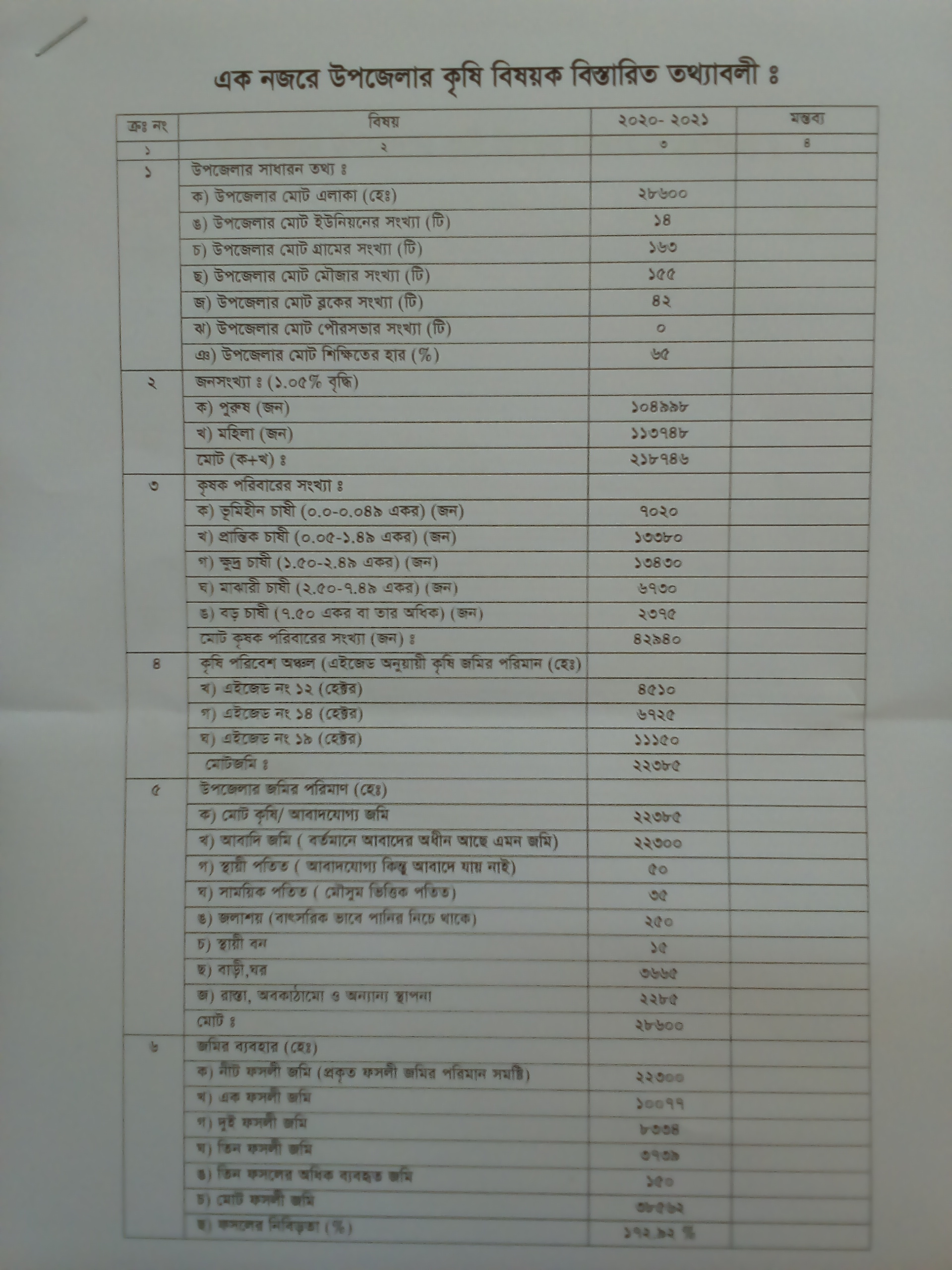| ৫ | উপজেলার মোট জমির পরিমান (হেঃ) | | |